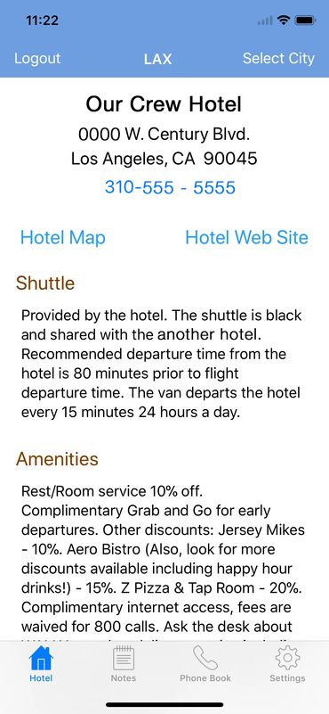 FA World is designed for Alaska Airlines Flight Attendants. It centralizes hotel information and company phone numbers flight attendants use every day in a simple and straight forward user interface.